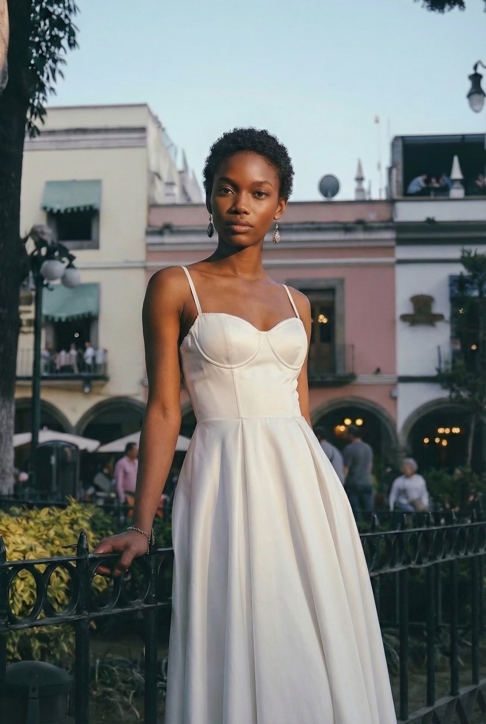 Modern Bridal: Pair with pointed-toe white pumps, a sleek low bun, and pearl drop earrings for a rehearsal dinner or civil wedding.